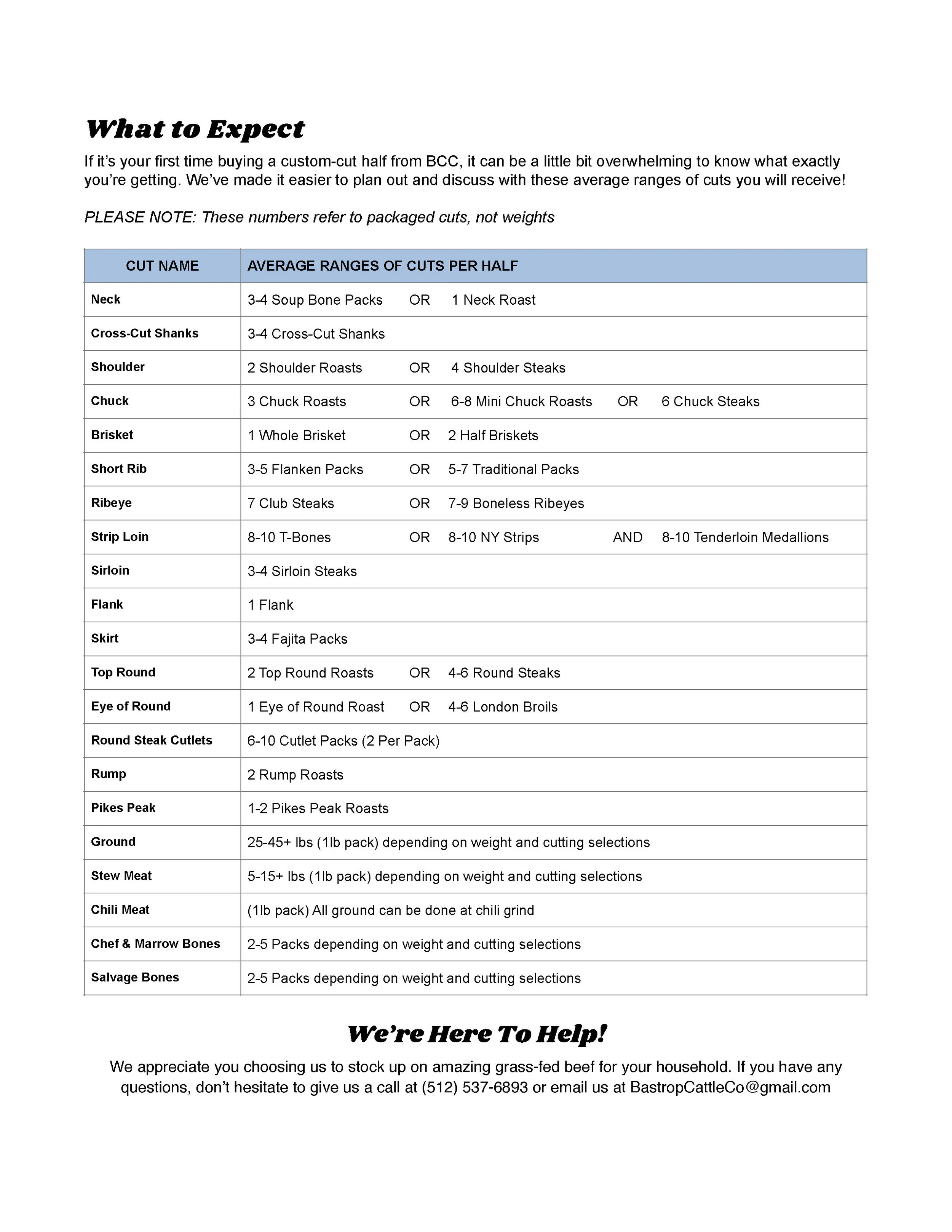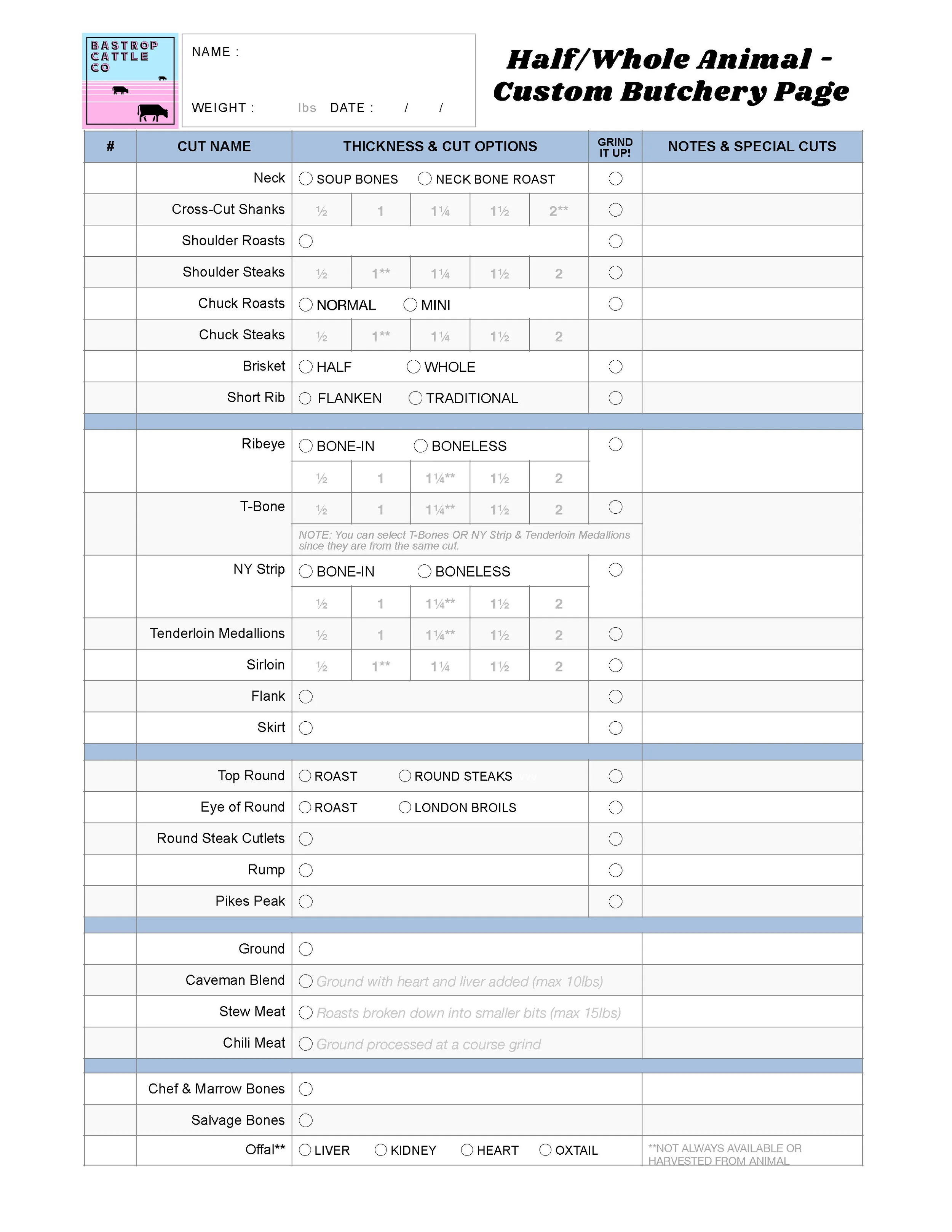 You can also check out the blank cut page below to get an idea of some of the different ways we can custom cut your half. You don’t need to fill it out though! We will walk you through every option and tailor it to your cooking style.